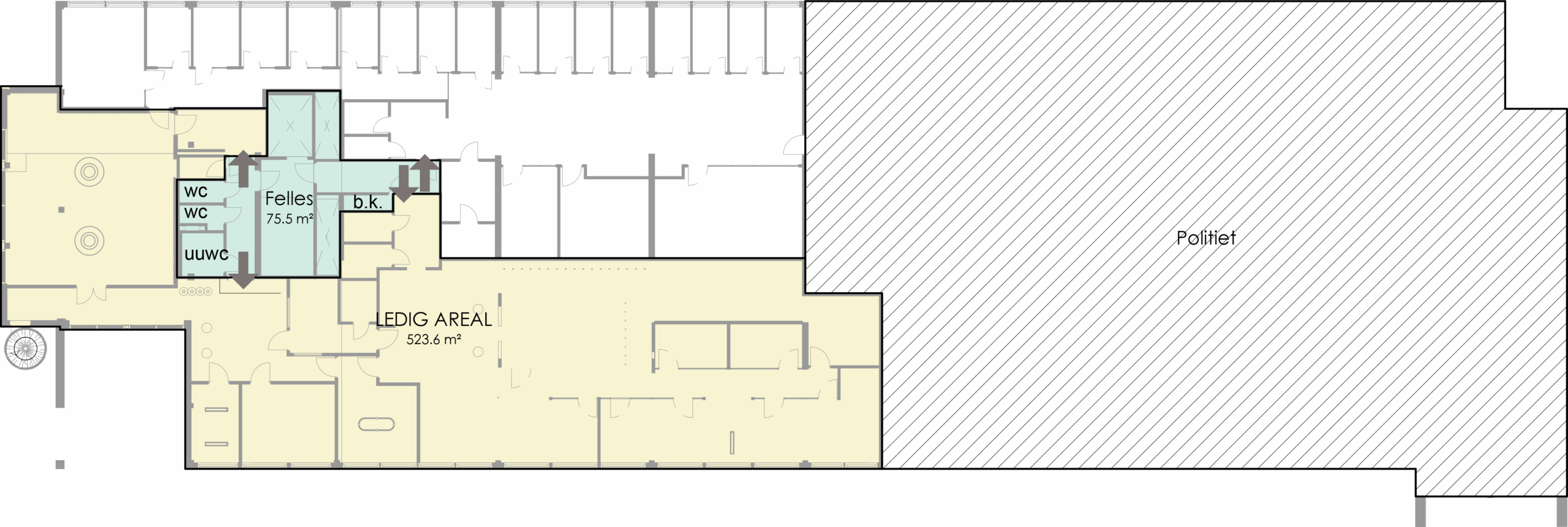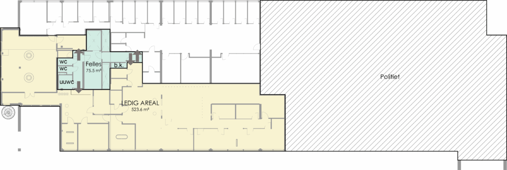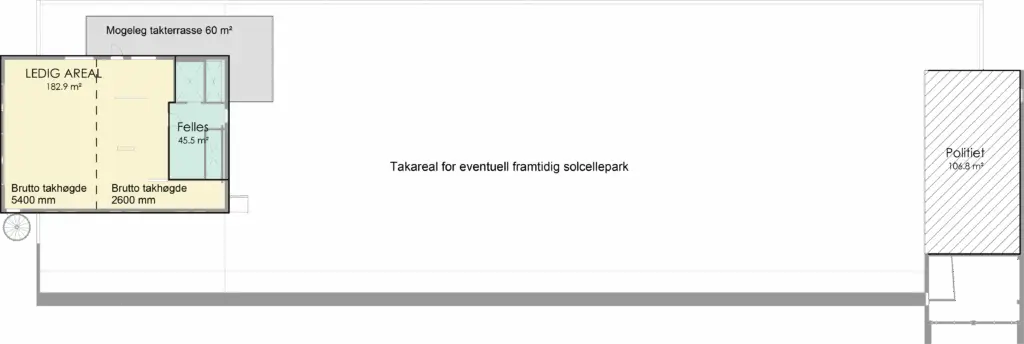 Noverande leigetakarar og ledig areal er teikna inn i arealoversikta.