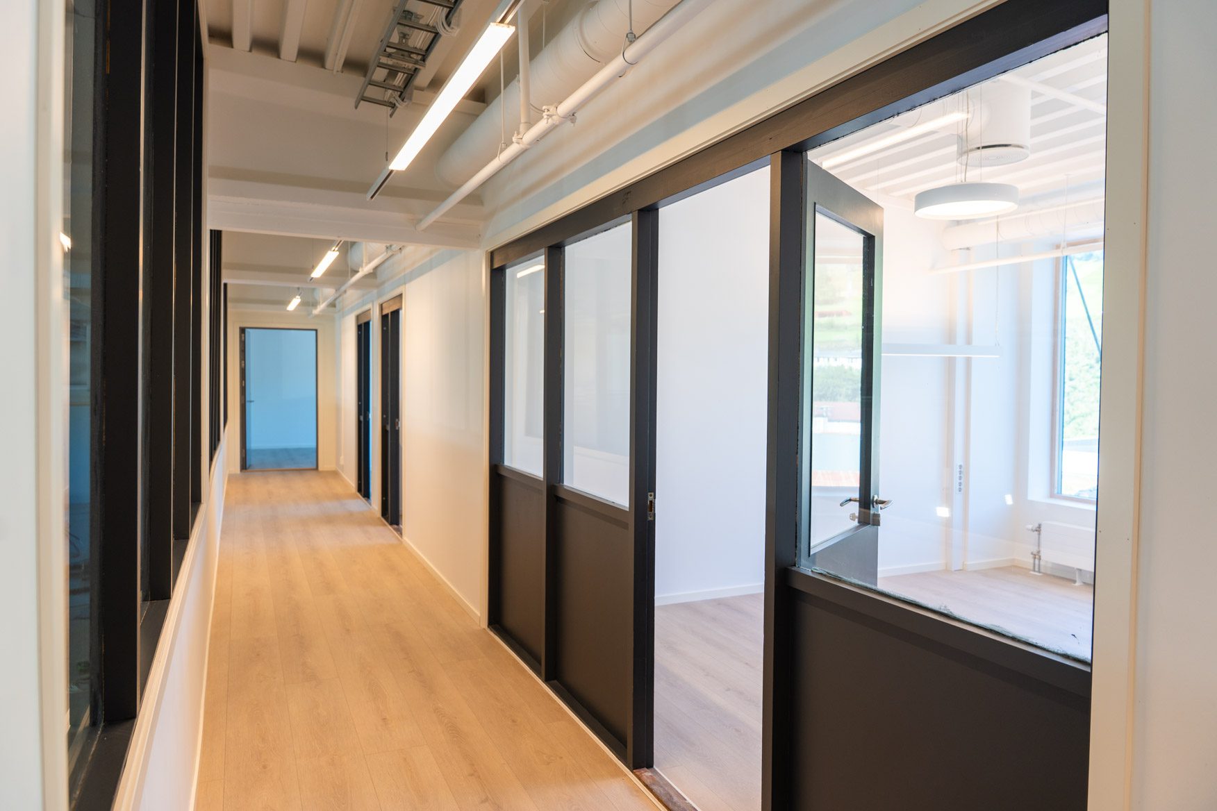 Sju innflyttingsklare kontor med opptil 20 kontorplasser. Fleksible løysingar frå 13–23 m²